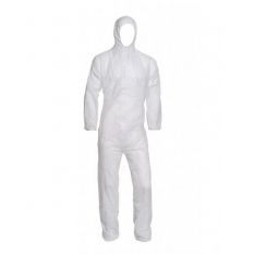 Mono desechable de polipropileno blanco. Cremallera bajo solapa. Mangas, piernas y cintura elásticas. Contorno de capucha elástico. Se entrega en una bolsa resellable.