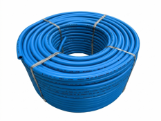 Tuyau en caoutchouc synthétique lisse bleu, renforcé par une armature textile en polyester à fabrication continue. Certifié conforme à la norme EN ISO 3821. Bonne résistance à l'usure, et aux conditions climatiques.